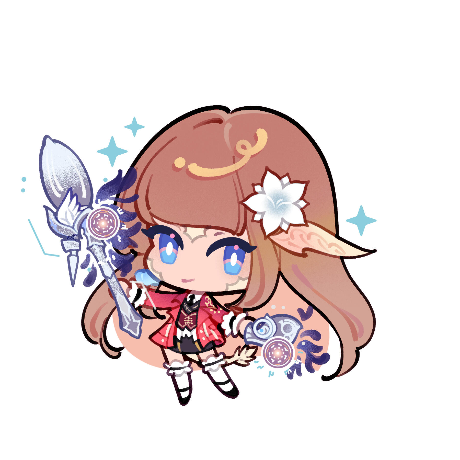 -- -A woman of many facets, -Erio is quiet, calm and collected, yet compassionate.- Her altruism and strong moral compass draws her to new situations and experiences. Despite her small stature, she is fiercely protective of the people and lands she holds dear. Erio would throw herself at the helm of danger, for nothing makes her happier than seeing them happy.-- -Petite, lithe, with fair complexion and sapphire eyes. The Raen has light brown hair styled in a hime cut, though it is not unlikely to see it fashioned differently to suit the occasion. She is reserved in appearance and personality, electing to dress feminine and elegant. Some of Erio's favorite accessories include glass pumpkin and firecrest earrings, an eternity ring; she may choose to forgo silver horn ornaments.-- -An all-round magic user with a newfound joy for -Pictomancy.- Erio's journey began as a -Thaumaturge- in the city-state of Ul'dah, where she honed her sorcery through quests from the Adventurer's Guild. The Raen's travels would return her East to fight for the liberation of Doma, where Erio reconnected with her family's discipline of -iajutsu.- She combined the swordplay of iajutsu and the arcane art of black magic to further her mastery as a -Red Mage.- The Au Ra can be found in the frontlines infusing her arts as a -Paladin- or -Dark Knight-.-- -From swords to brushes, Erio takes to the West to experience new cultures and all else Etheirys has to offer joined by her wife Aster.